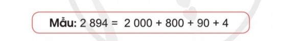 Viết các số 2 894, 7 205, 5 668, 3 327 thành tổng của nghìn, trăm, chục, đơn vị