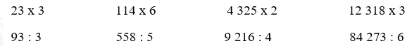 - Biểu thức có phép tính cộng, trừ hoặc nhân, chia thì ta thực hiện phép tính từ trái sang phải.