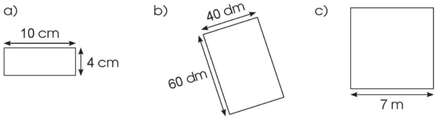 Tính chu vi các hình chữ nhật, các hình vuông sau: