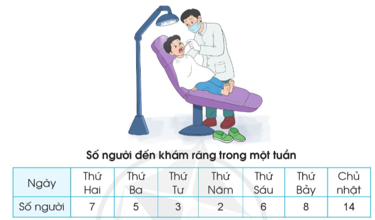 Dưới đây là bảng số liệu thống kê số người đến khám răng tại một phòng khám nha khoa vào các ngày trong một tuần: