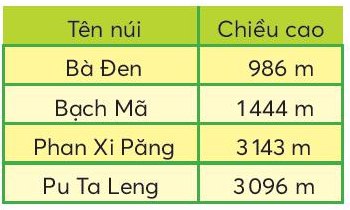So sánh chiều cao của các ngọn núi rồi trả lời câu hỏi.