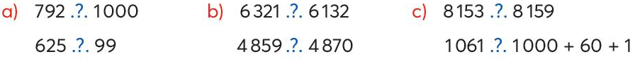 +) Nếu hai số có cùng số chữ số thì so sánh các cặp chữ số cùng hàng lần lượt từ trái sang phải.