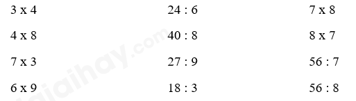 Tính nhẩm kết quả dựa vào bảng nhân, bảng chia đã học.