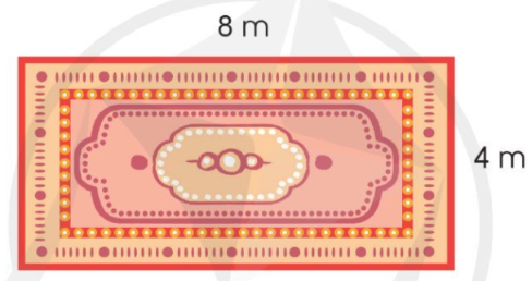 - Chu vi tấm thảm bằng chu vi hình chữ nhật có chiều dài 8 m, chiều rộng 4 m.