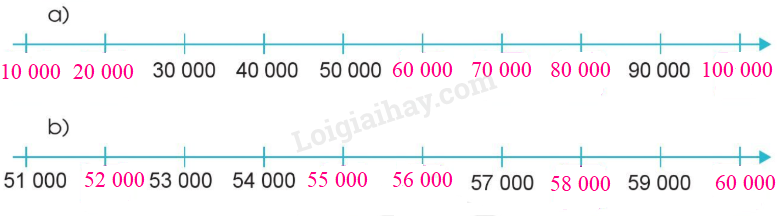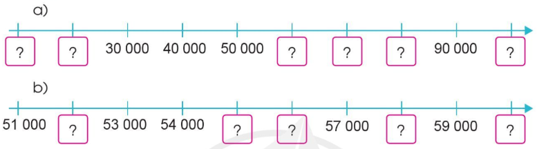 Đếm thêm 10 000 đơn vị hoặc 1000 đơn vị rồi viết số thích hợp vào ô trống.