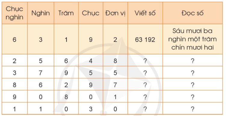 Viết số hoặc đọc số lần lượt từ hàng chục nghìn, nghìn, trăm, chục, đơn vị.