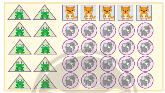 Vậy mỗi bạn nhận được 2 miếng dán hình con ếch, 1 miếng dán hình con mèo, 4 miếng dán hình con voi.