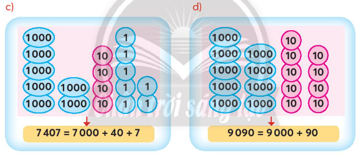 d) 9 090 = 9 000 + 90. Vậy câu d đúng.