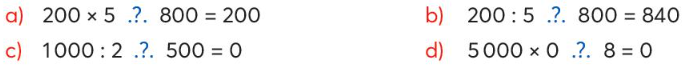 Thay dấu .?. bằng dấu phép tính thích hợp (+., – , x, :)