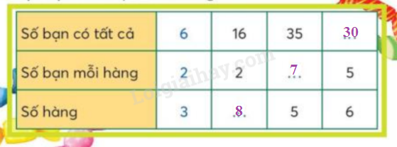 - Muốn tìm số hàng ta lấy số bạn có tất cả chia cho số bạn mỗi hàng.