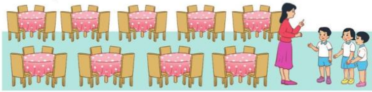 a) Số chỗ ngồi của 9 bàn = Số chỗ ngồi của mỗi bàn x 9