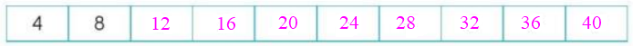 a) Đếm thêm 4 đơn vị từ trái qua phải rồi viết các số còn thiếu vào ô trống.