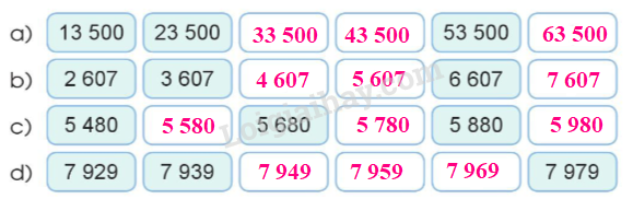 Đếm thêm 10 000, 1 000, 100, 10 đơn vị rồi viết số thích hợp vào ô trống.
