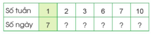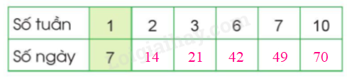 Để tìm số ngày ta lấy số ngày trong 1 tuần nhân với số tuần.