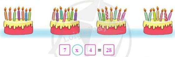 Trên mỗi chiếc bánh có 7 cây nến, vậy 4 chiếc bánh có 7 x 4 = 28 cây nến.