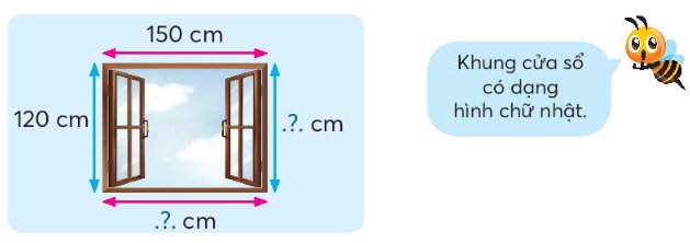 Khung cửa sổ là hình chữ nhật nên 2 cạnh dài bằng nhau; 2 cạnh ngắn bằng nhau. Vậy ta có kết quả như sau: