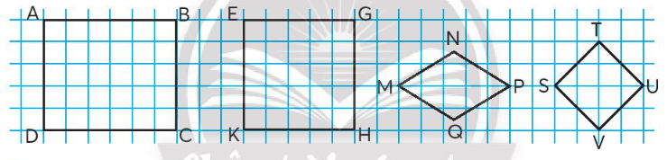 Dựa vào kiến thức: Hình vuông có 4 góc vuông, 4 cạnh có độ dài bằng nhau.