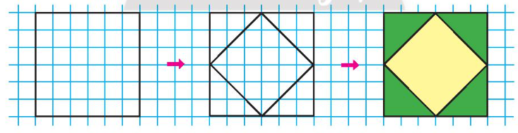Học sinh sử dụng giấy kẻ ô vuông rồi vẽ và trang trí hình vuông theo mẫu.