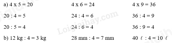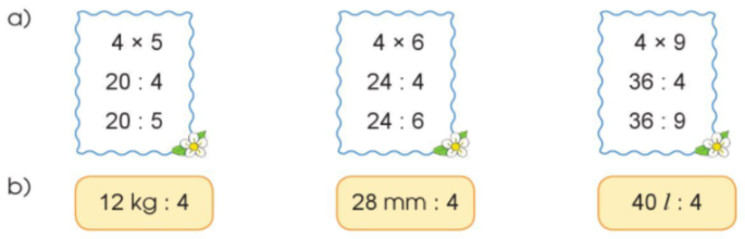 a) Tính nhẩm kết quả phép tính dựa vào bảng nhân 4. Từ đó tìm kết quả phép chia tương ứng.