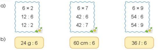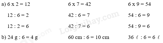 a) Tính nhẩm kết quả phép tính dựa vào bảng nhân 6. Từ đó tìm kết quả phép chia tương ứng.