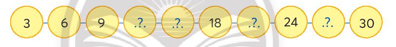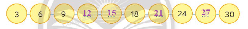Đếm thêm 3 đơn vị rồi viết các số còn thiếu vào ô trống.