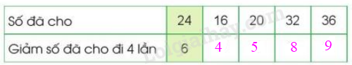 Muốn giảm một số đi 4 lần, ta chia số đó cho 4.