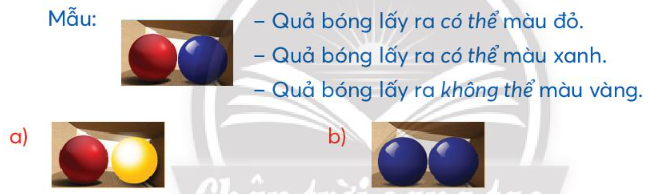 Dùng các từ có thể, chắc chắn, không thể để mô tả các khả năng xảy ra về màu của quả bóng được lấy.