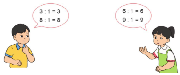 Nhận xét: Số nào chia cho 1 cũng có kết quả bằng chính số đó.