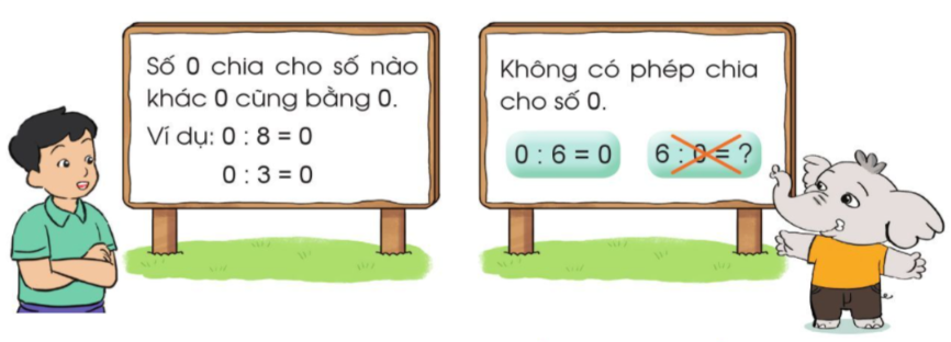 b) Dựa vào kết luận: Số 0 chia cho số nào khác 0 cũng bằng 0 rồi viết kết quả phép tính.