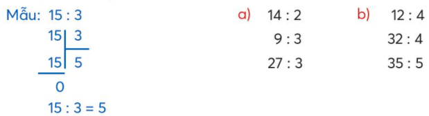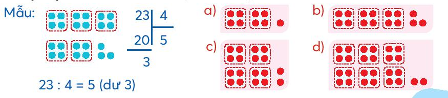 Viết phép chia theo nhóm 4 (theo mẫu).