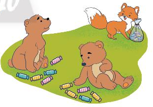 Cáo chia cho hai chú gấu mỗi chú 5 cái kẹo, phần kẹo còn lại là của cáo.