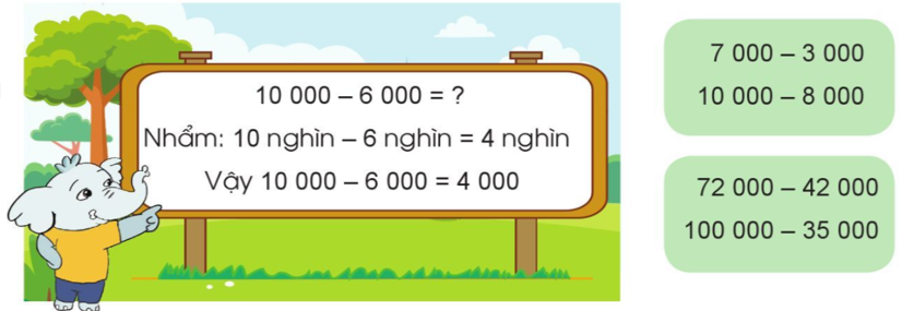 Quan sát ví dụ mẫu rồi tính nhẩm phép trừ các số tròn nghìn.