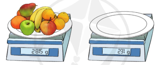 Trái cây đặt trên đĩa cân nặng số gam là: