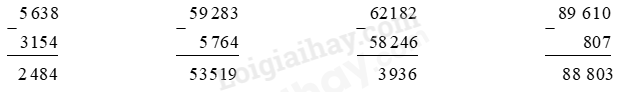 - Tính: Thực hiện trừ lần lượt từ phải sang trái.