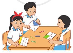- Gấp đôi một tờ giấy, rồi lại gấp đôi tiếp.
