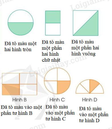 Bước 2: Chọn hình có số phần được tô màu là kết quả vừa tìm được.