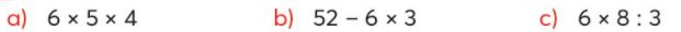 b, 52 – 6 x 3 = 52 – 18