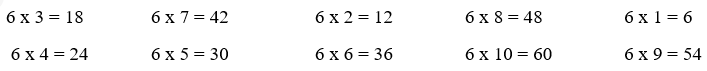 Đố bạn các phép nhân trong bảng nhân 6.