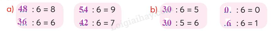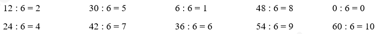 Tính nhẩm kết quả các phép tính dựa vào bảng chia 6.
