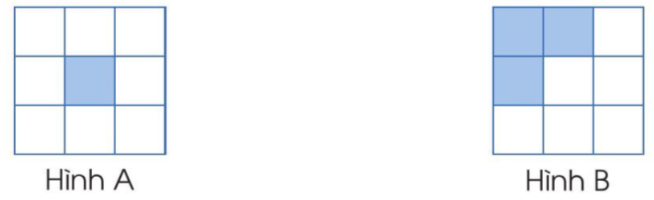 Hình A được chia thành 9 phần bằng nhau. Tô màu 1 phần.