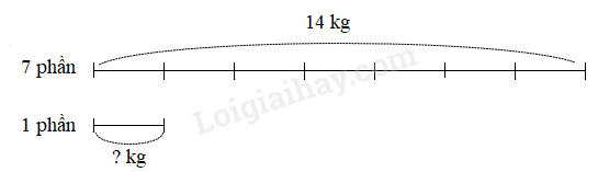 Bà chia 14 kg vải thiều thành 7 phần nặng như nhau. Hỏi mỗi phần vải thiều nặng bao nhiêu ki-lô-gam?
