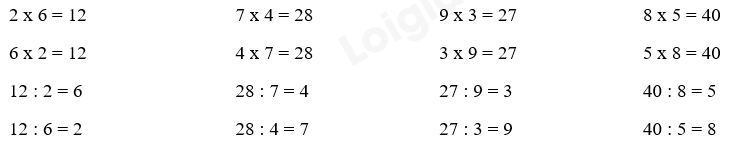 Tính nhẩm kết quả phép tính dựa vào bảng nhân và bảng chia đã học.
