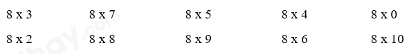 Đọc phép nhân trong bảng nhân 8 có tích là mỗi số dưới đây.