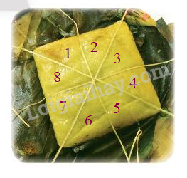 a, Cái bánh chưng này được chia thành 8 miếng bằng nhau.