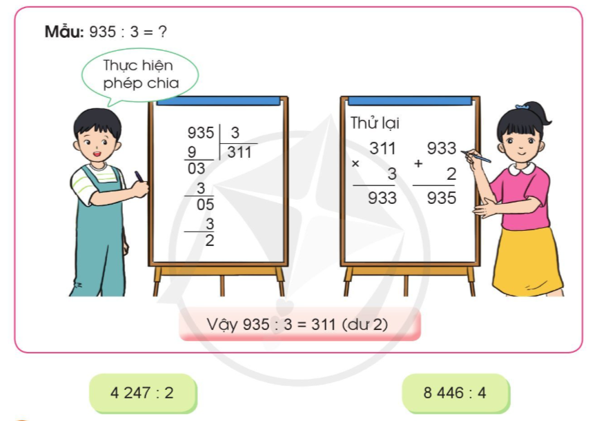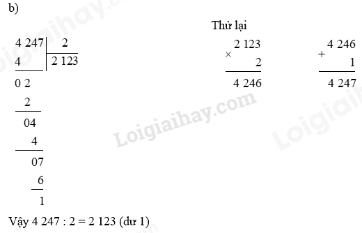 b) Thực hiện phép chia rồi thử lại theo mẫu.