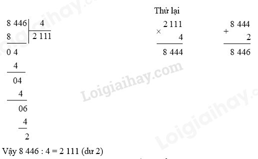 a) Tính rồi nêu thương và số dư trong mỗi phép chia sau: