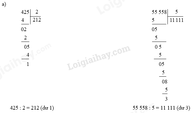 a) Thực hiện chia lần lượt từ trái qua phải.