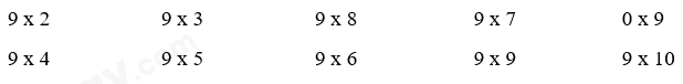 Đọc phép nhân trong bảng nhân 9 có tích là mỗi số dưới đây.