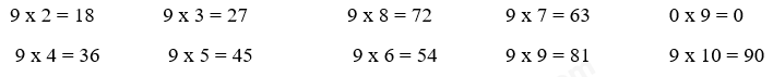 Học sinh đọc các phép nhân trong bảng nhân 9 có tích là số đã cho ở đề bài.