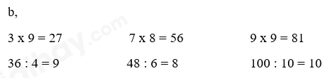 Dựa vào bảng nhân để tìm kết quả các phép tính.